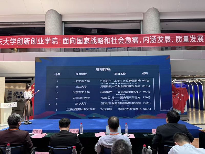 图片说明:光绘世界团队负责人浦梓萱在大赛作创新转化优秀项目分享 金奖项目风采 • 超净排放——高盐废水治理的中国方案 团队成员:姜胜科、刘晨语、陈佳丽 指导教师:杨子旭、韩一帆、邢辉 团队自主开发多款非均相催化剂,设计系列大中小反应器,并耦合高级氧化/还原、动态复合膜分离和低温蒸发结晶等工艺,将高盐废水治理从“高成本末端处置”升级为“低成本、可资源化、可持续运营”的产业化解决方案。同时解决高盐废水中高COD、难分离、盐资源化差和运行成本高等问题。目前技术已在安徽昊源化工企业落地示范,在废水治理领域前景广阔。